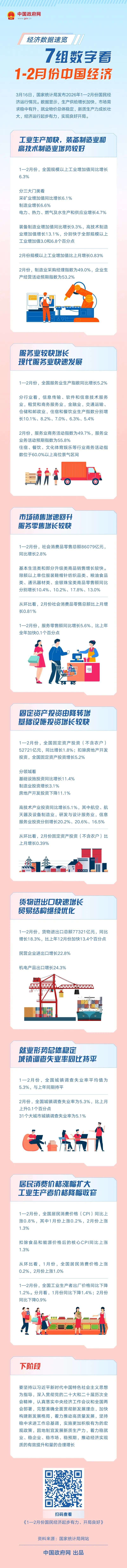 7組數(shù)字看1—2月份中國經(jīng)濟